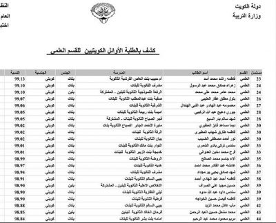 اسماء أوائل الثانوية العامة في الكويت 2019 في كافة التخصصات المصريين يسيطروا على العشر الأوائل