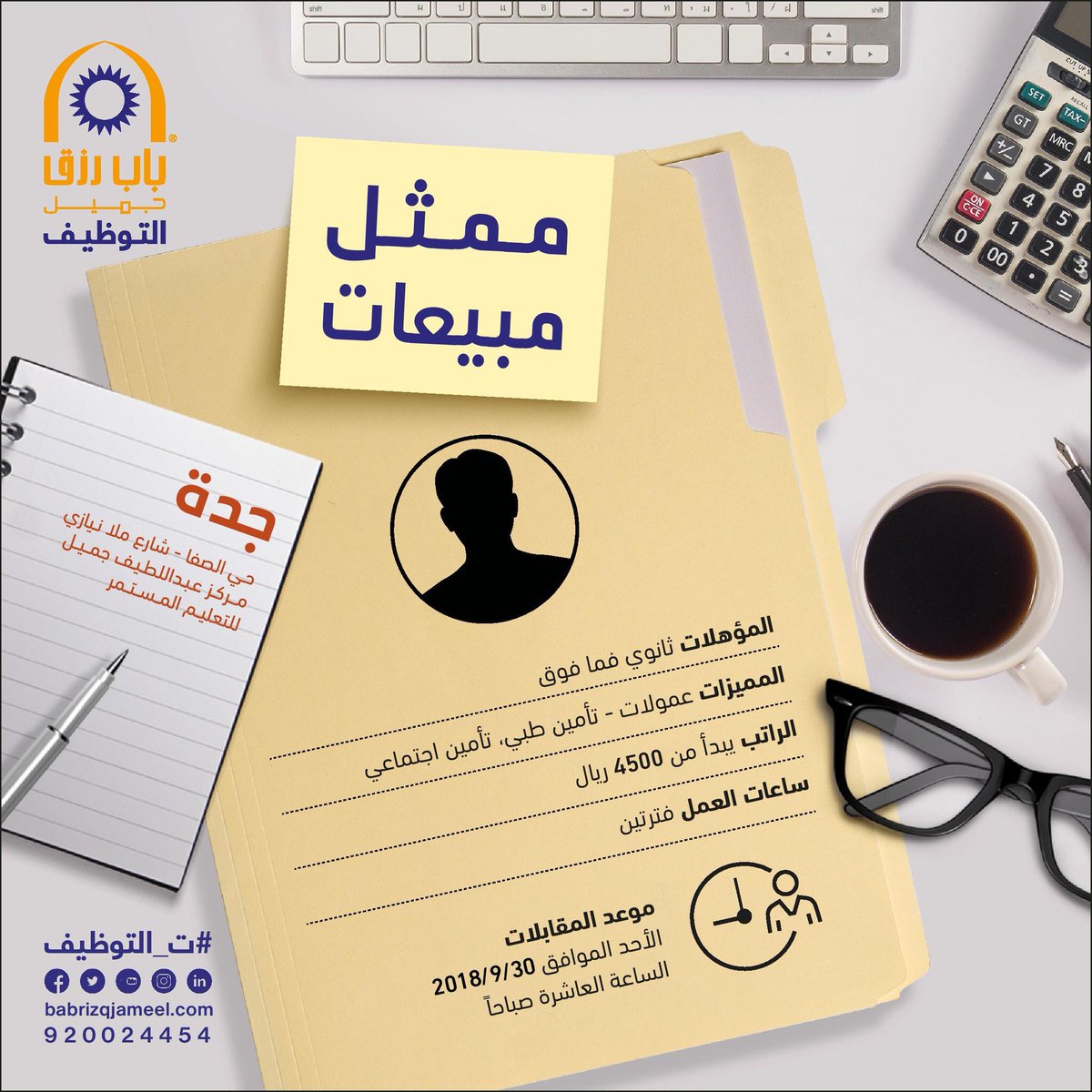باب رزق جميل وظائف ممثلي مبيعات في جدة برواتب 4500 ريال التقديم الاحد